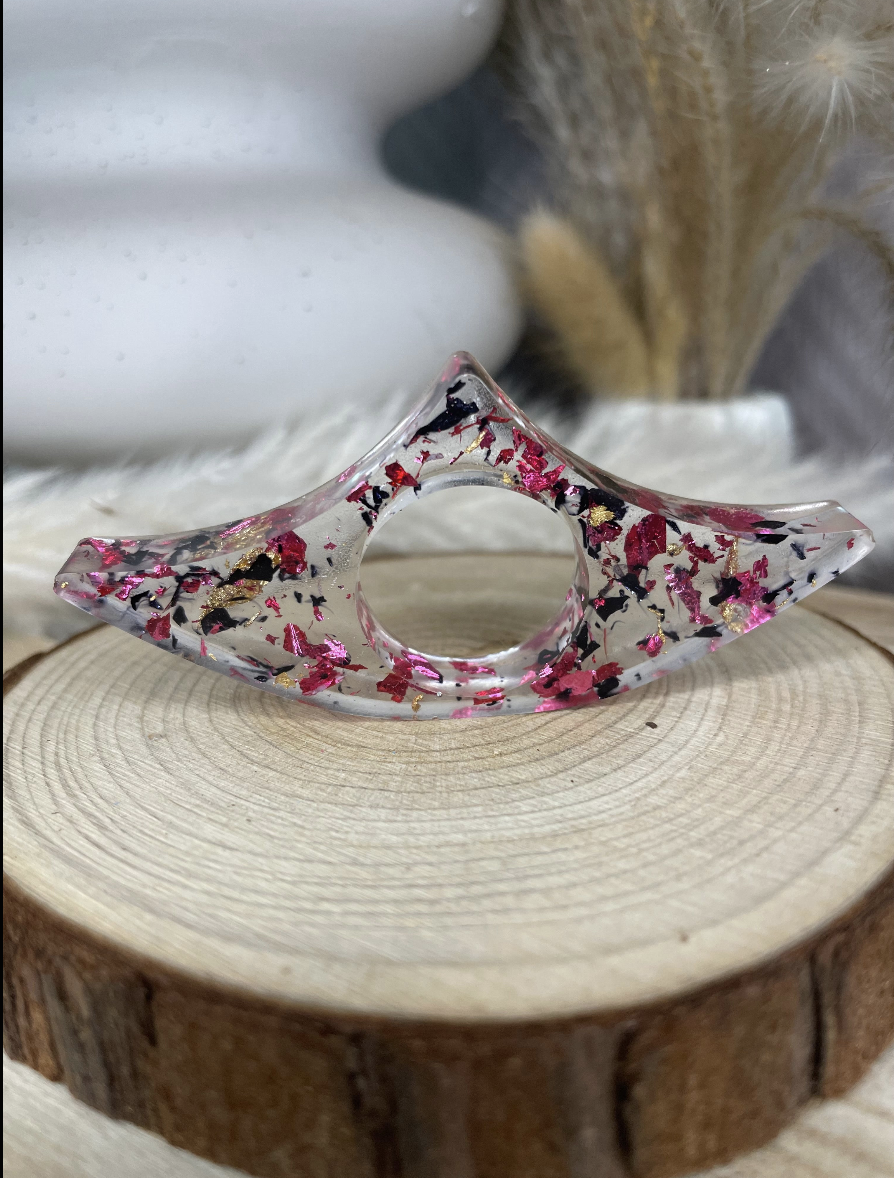 Cette magnifique bague de lecture en résine est l’accessoire parfait pour les amateurs de livres et de bijoux. La bague est fabriquée à la main avec de la résine de haute qualité, des fleurs colorés au choix et des feuilles d’or incrustées pour un look élégant et romantique.