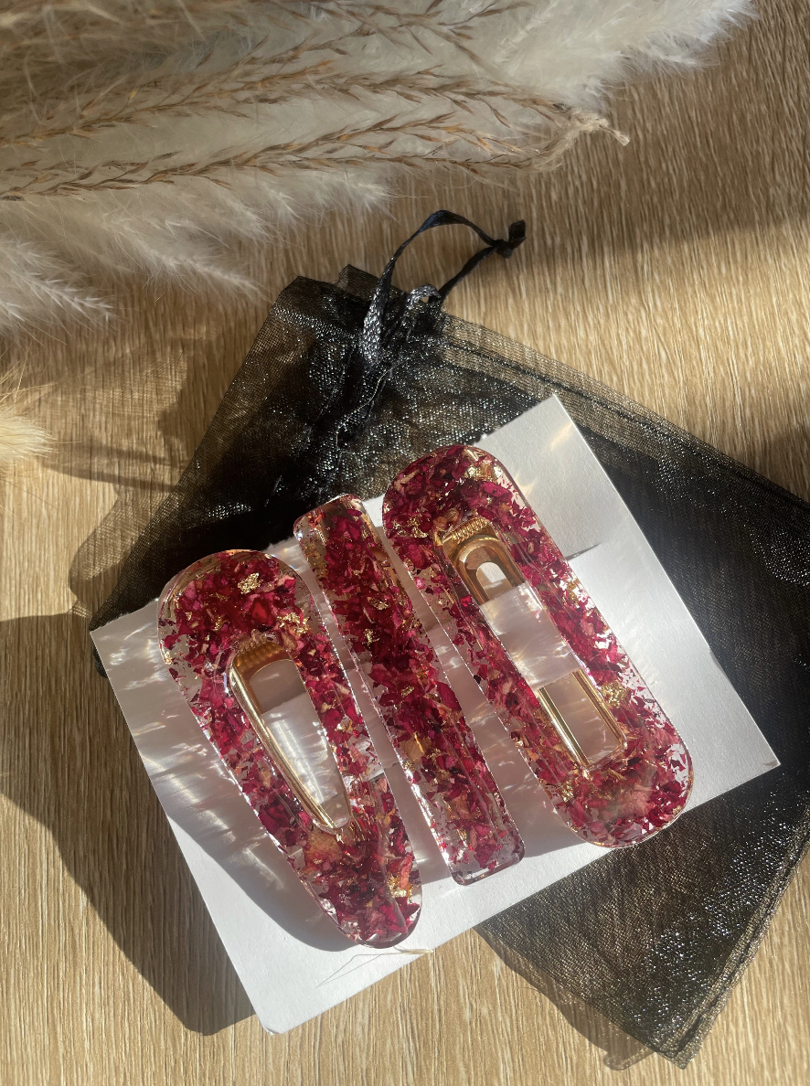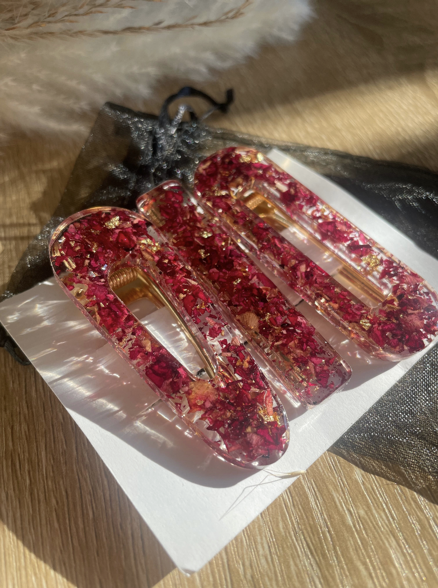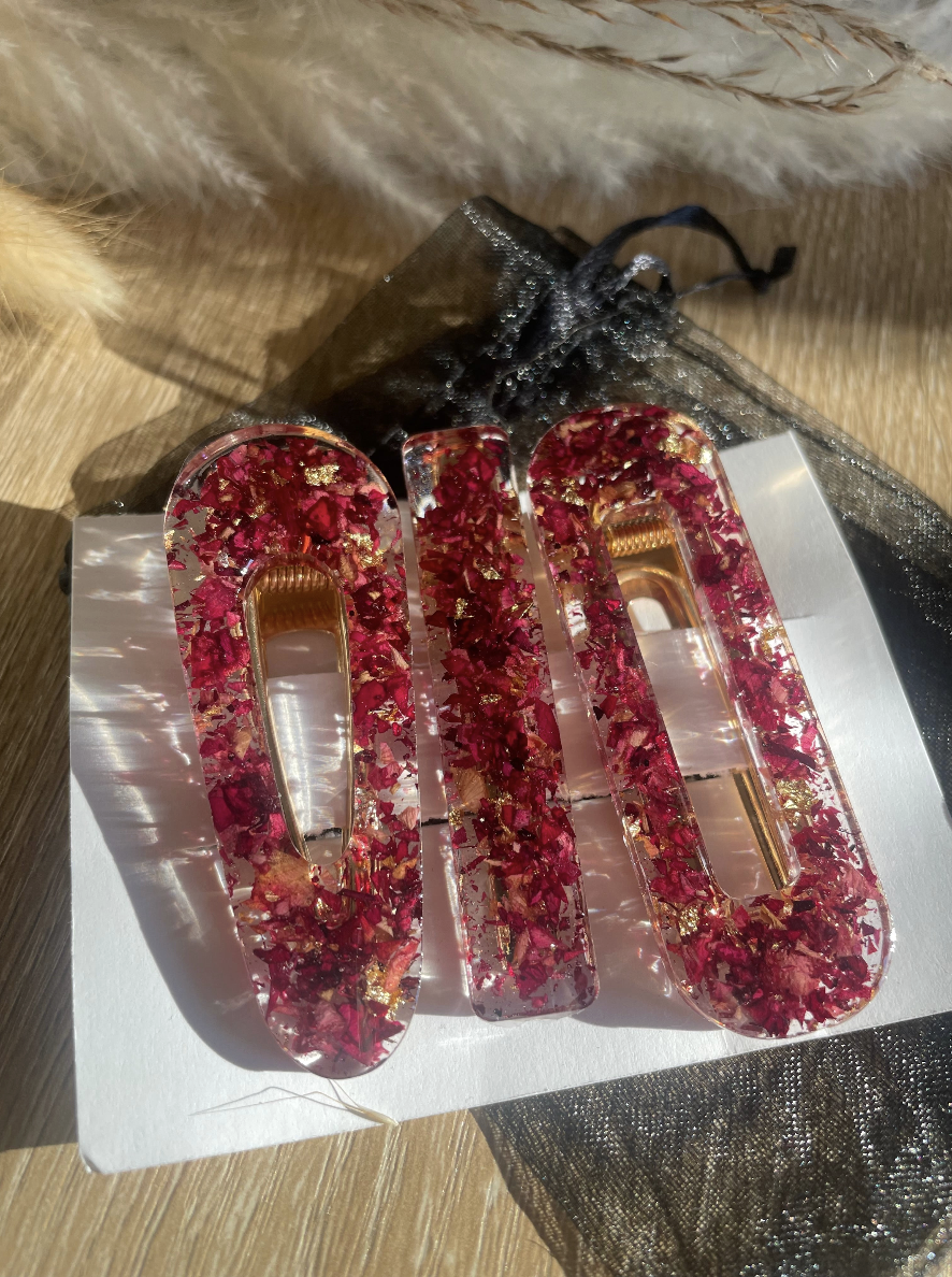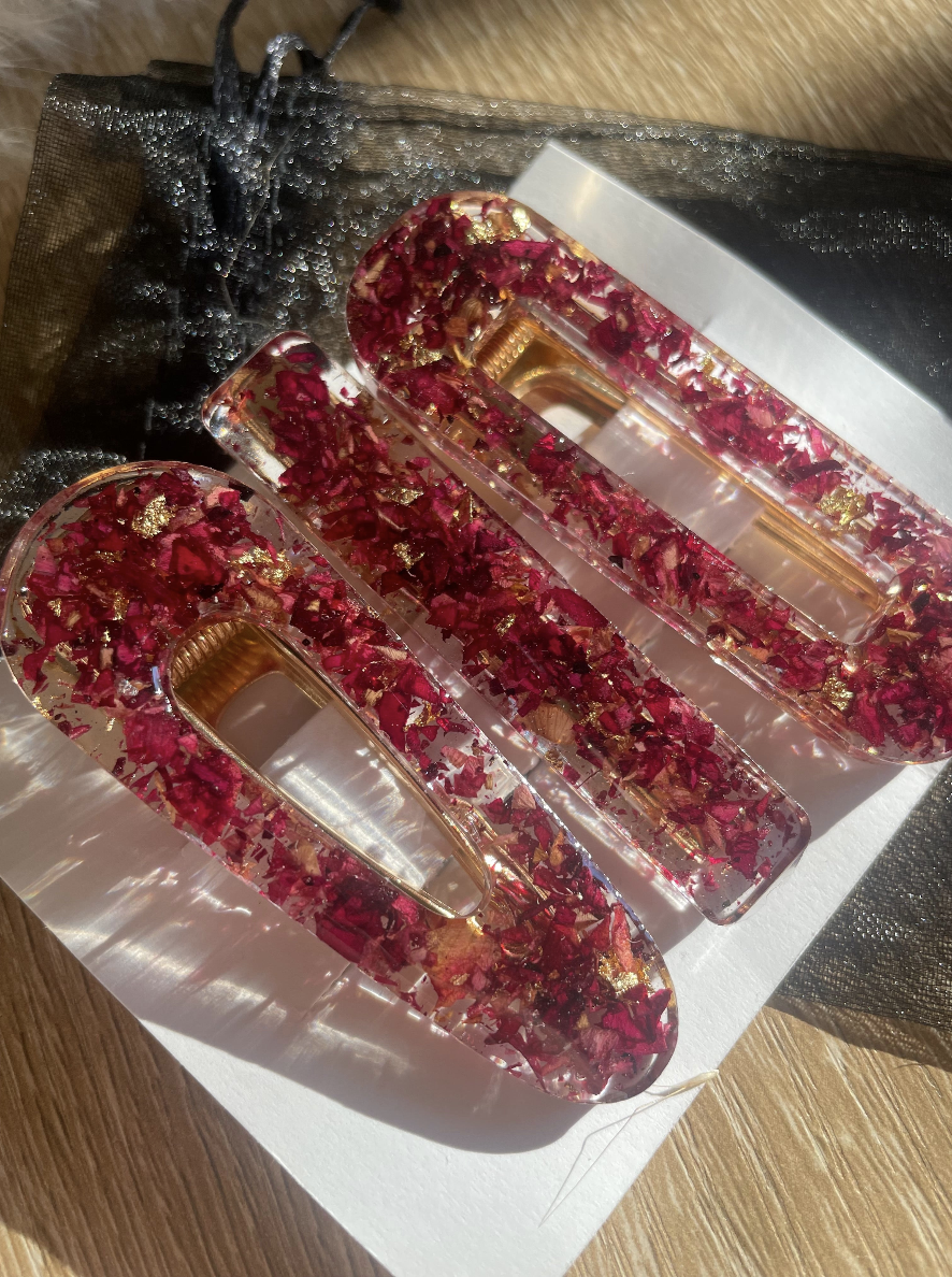 Réalisées avec des pétales de roses et feuilles d’or sur un support dore