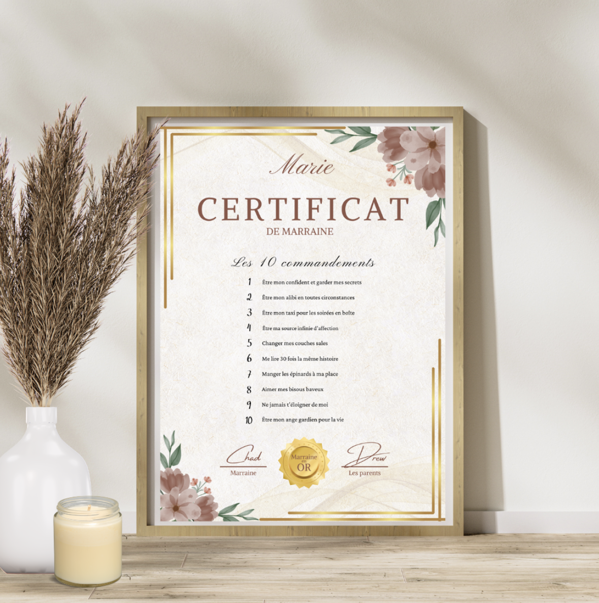 Offrez leur un certificat où chacun de vous apposera sa signature pour approuver son engagement aux 10 commandements.