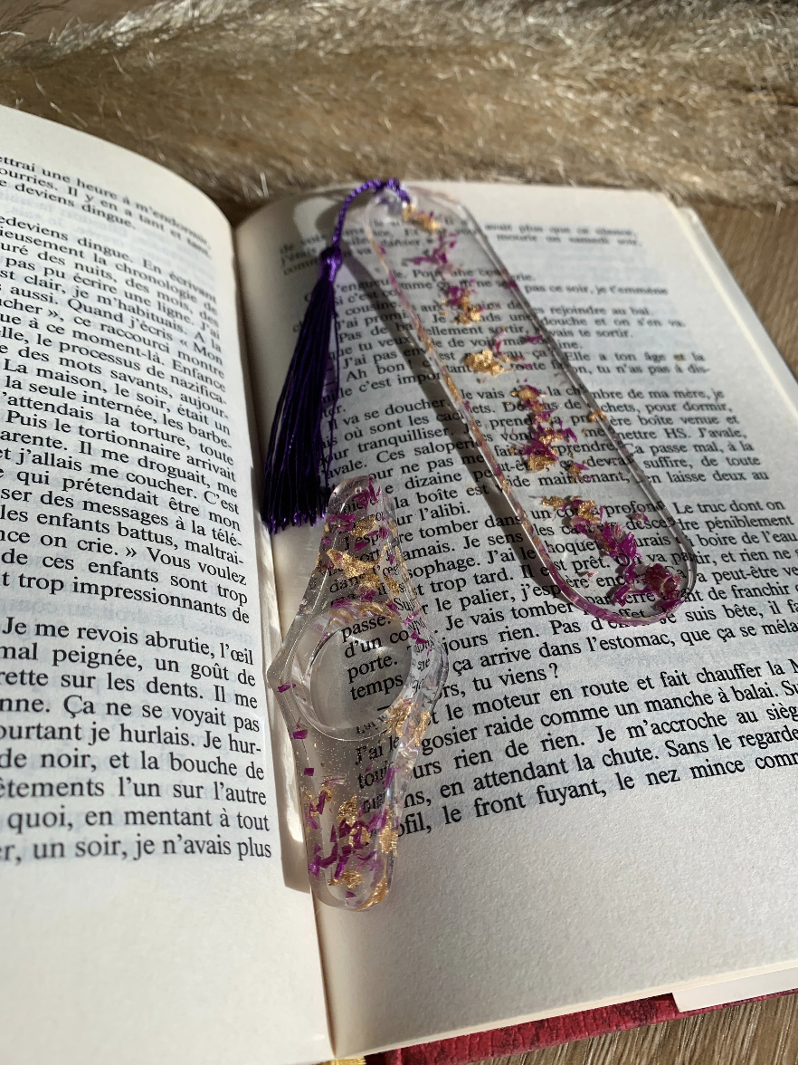 Marque-pages en résine époxy et sa bague de lecture ✨