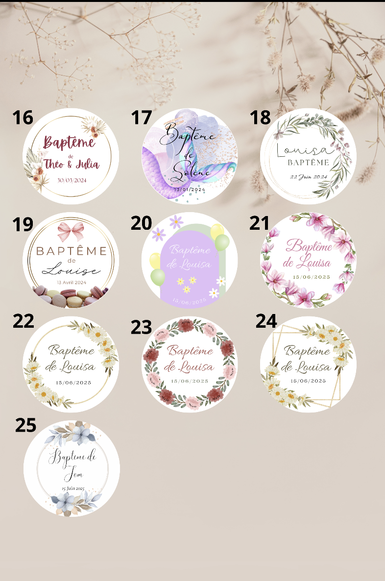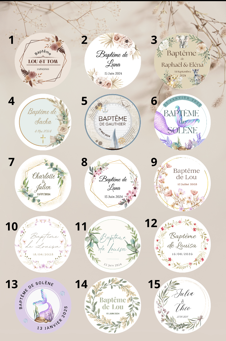 Etiquettes autocollantes, idéal pour vos évènements (Mariage, Baptême, Anniversaire, EVG, EVJF, Fête, Baby Shower…) 🌞