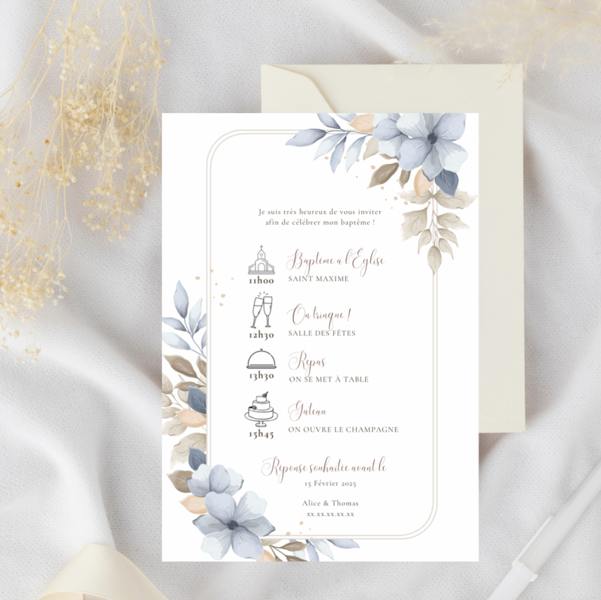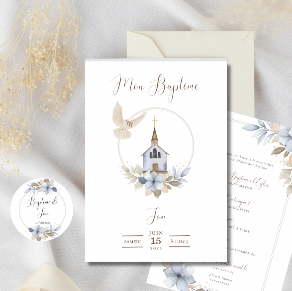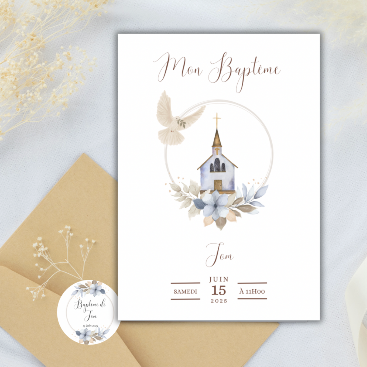 Invitez votre famille et proche au baptême de votre enfant de façon originale avec nos invitations.