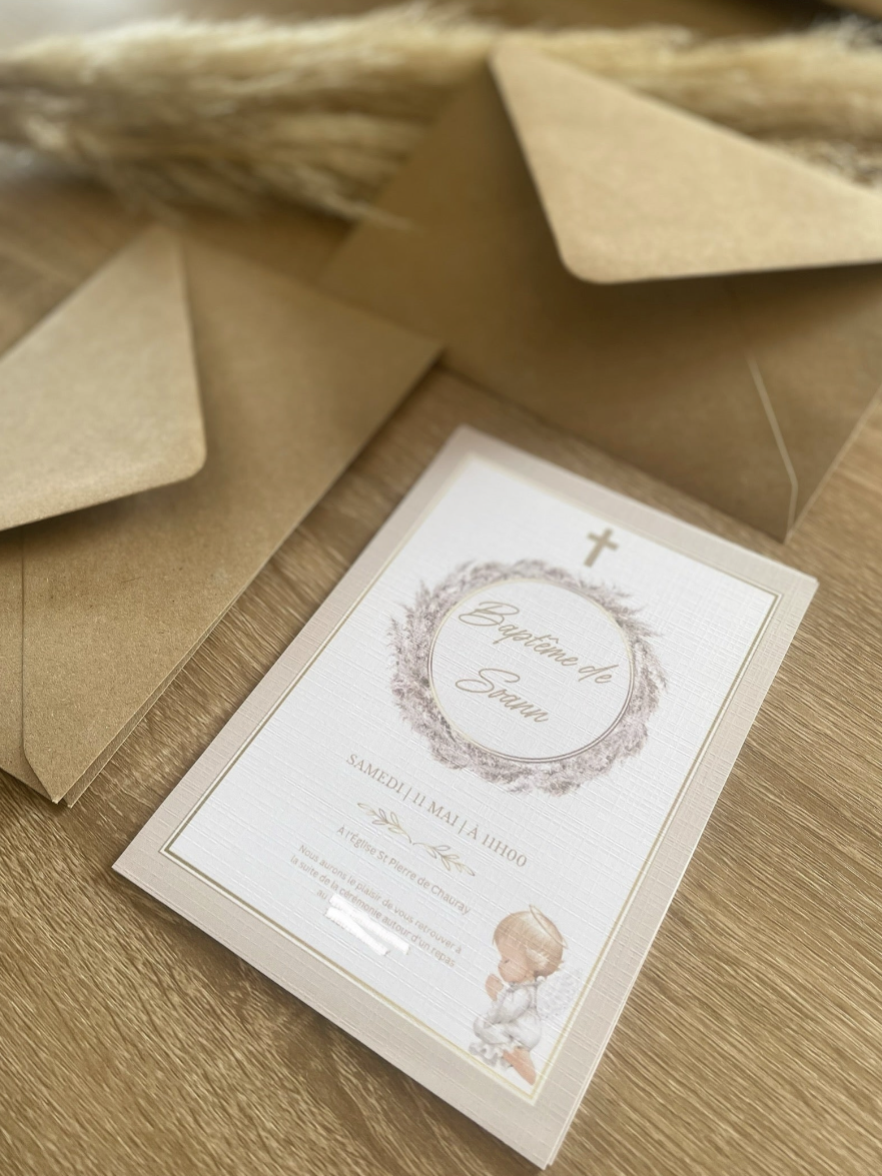 Invitez votre famille et proche au baptême de votre enfant de façon originale avec nos invitations.