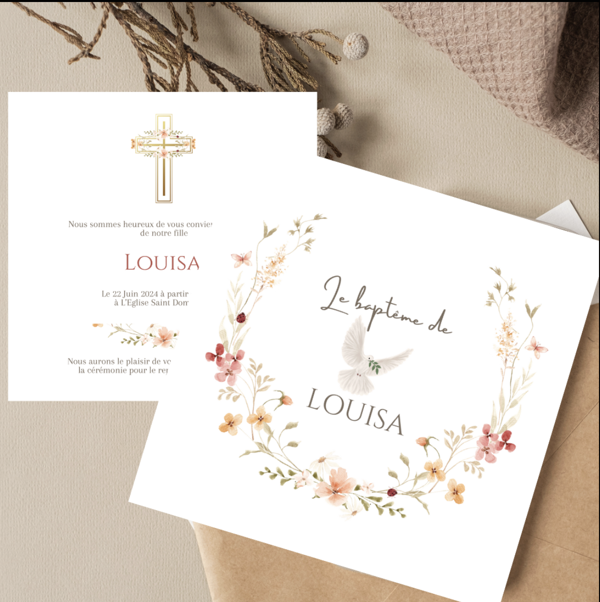 Invitez votre famille et proche au baptême de votre enfant de façon originale avec nos invitations.
