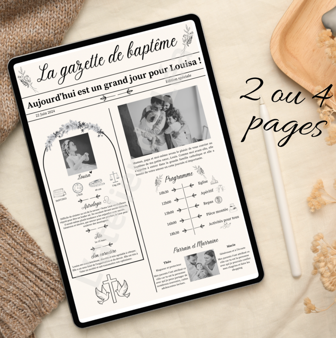 Quel que soit votre thème La Gazette des baptême trouvera sa place dans votre décoration.